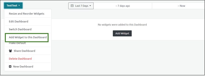 Select Add Widget to this Dashboard option from the newly created dashboard.