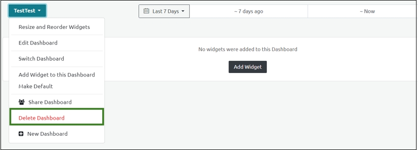 Step Result: The Dashboard is deleted successfully along with the widgets.