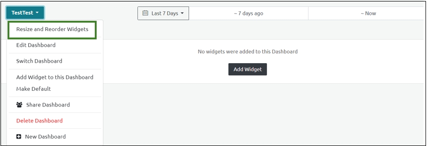 From the Dashboard drop-down menu, click Resize and Reorder Widgets.