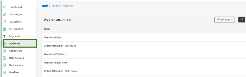 200 per page: Displays up to 200 Audiences on the current page.