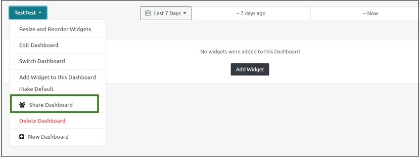 Select the Share Dashboard option from the newly created dashboard option.