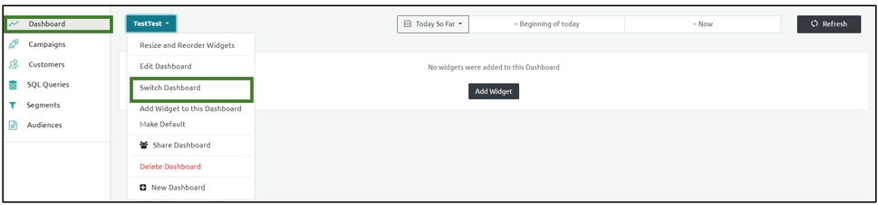 From the new Dashboard, select the Switch Dashboard option.