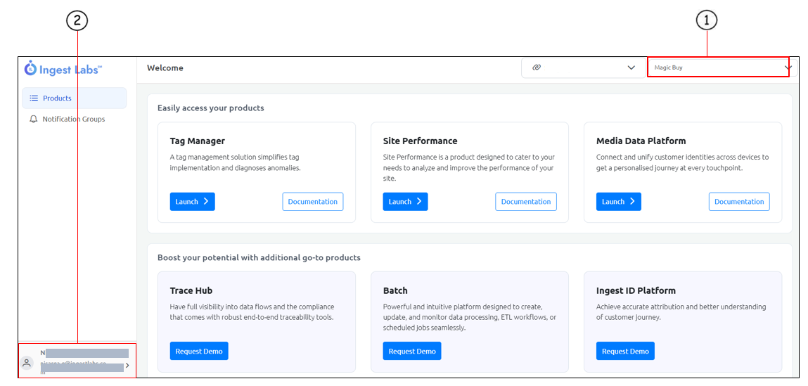 The **Users** section displays the number of users accessing the Ingest Labs product and the roles allocated for a particular user.