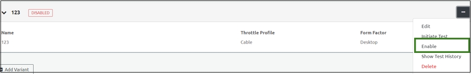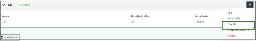 Select disable from the drop-down menu on the top right corner of the New Variants section.