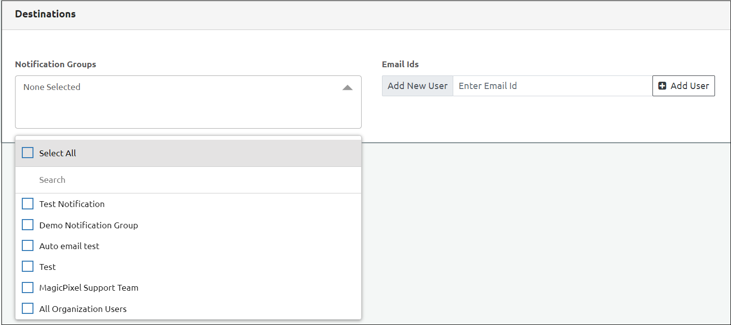 Note: You can select Notification Groups, Email IDs, or both, based on where you want to send the alerts.