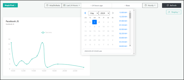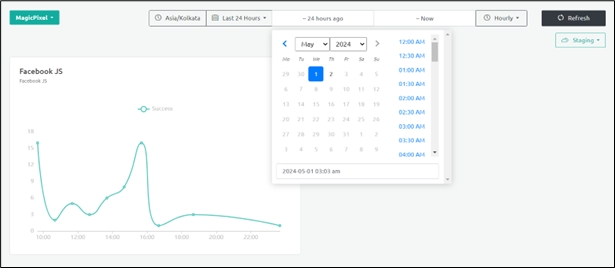 The Dashboard screen displays the required filtered information for a default period of 24 hours. You can also specify a time range to display the information for a specific period and click Refresh.