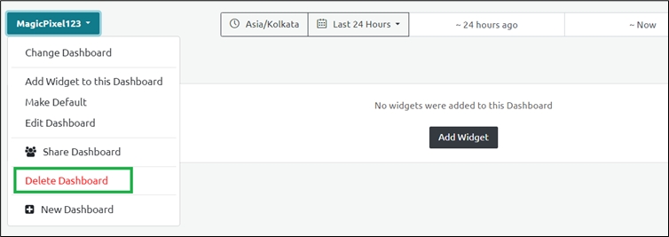 Step Result: The Dashboard is deleted successfully along with the added widgets.