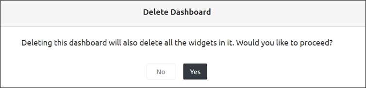 Step 2: A confirmatory dialog box appears with the message: Deleting the dashboard will also delete all widgets in it. Would you like to proceed?