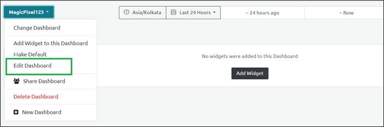 Step 1: Select Edit Dashboard from the newly created dashboard drop-down menu.