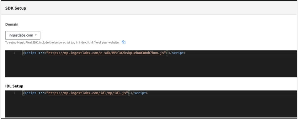 To set up Ingest Labs SDK, you must include the following script tag in index.html file of the website. Once the script is executed, the SDK is installed on the client website.