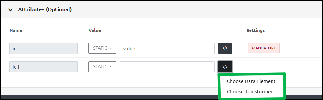 Step 7: The Attributes section lists the Attributes for Data Elements and Transformers. This is an Optional section.