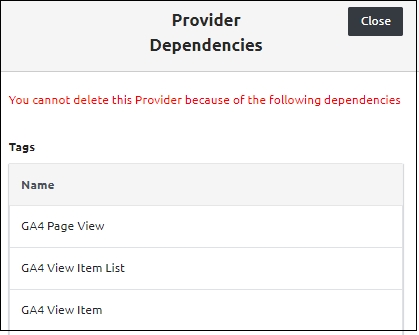 Note: You cannot delete a provider that includes provider dependencies with the other attributes. Only after deleting the dependent categories, you can delete the Provider successfully.