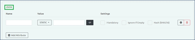 Step 7.1.3: JSON: Enter the Attribute name and value, and configure the Settings.