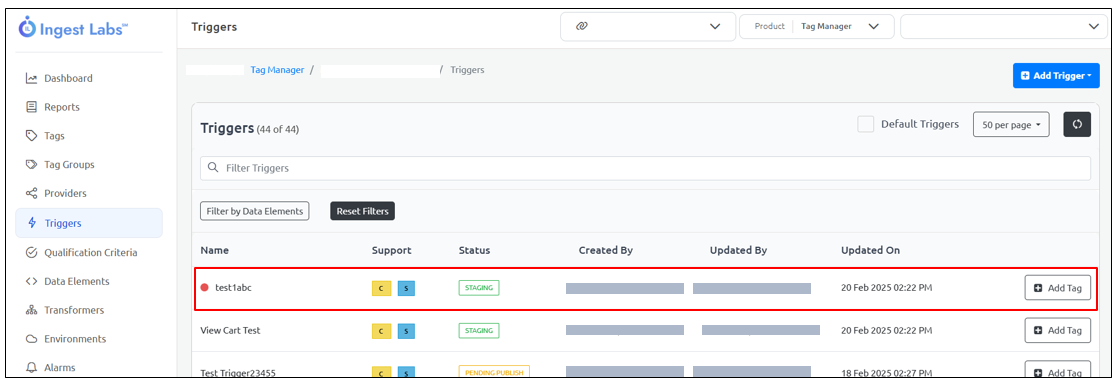 **Note**: You cannot delete the default triggers as the option for delete option is unavailable for default triggers.